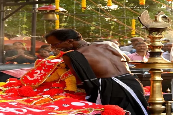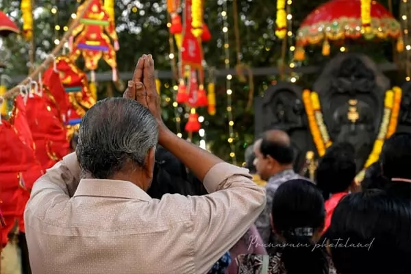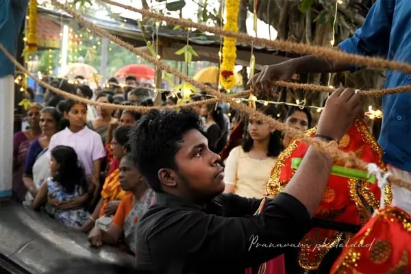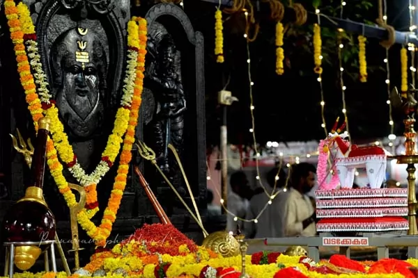 04The centuries old dravidian folk art by name " Bharatham kali( ഭാരതം കളി ), Malakkuda procession( മലക്കുട എഴുന്നള്ളത്ത് ), and Kettukazhcha ( കെട്ടുകാഴ്ച ) are the main traditional functions at the temple on the Utcharam day of Makaram 28.