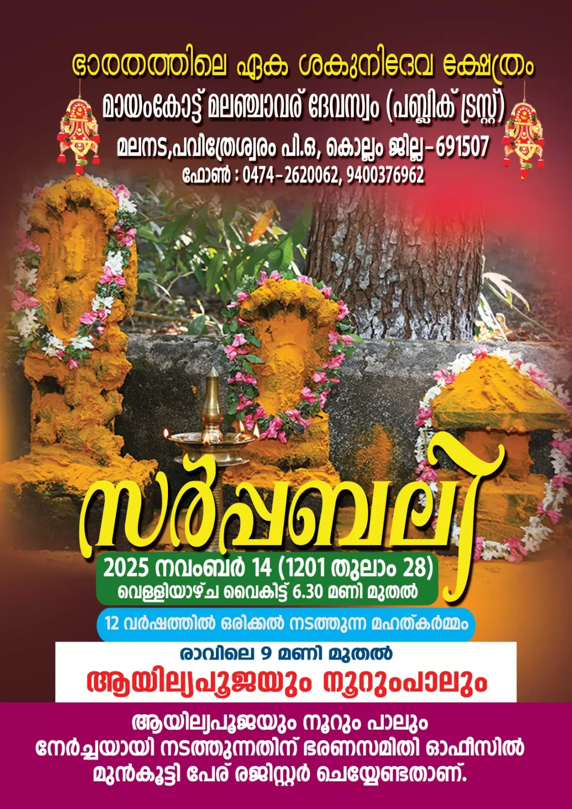 03The temple festival known by name " Malakkuda Utchara Maholsavam" celebrates to 9 days, starts by hoisting of flag on Makaram 20 and ends at Makaram 28 every year.